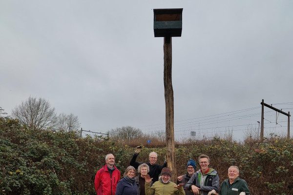 In het kader van de 2e beplantingsfase zijn er half december veel nieuwe boompjes en struiken in de grond gezet. Daarnaast hebben we een valkennest gebouwd in de hoop dat een torenvalk (al gesignaleerd!) zich hier vestigt.